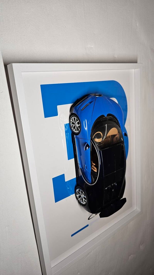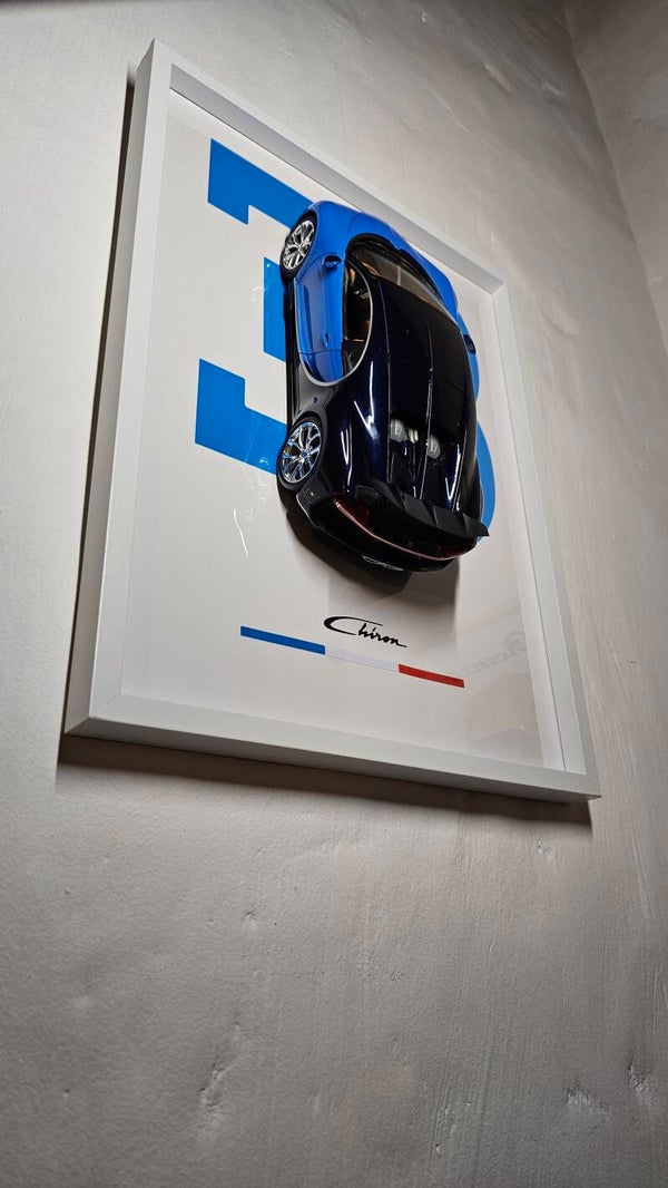 BUGATTI CHIRON 1/18 SUR CADRE BLANC